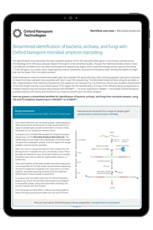 From efficient library preparation to scalable sequencing and intuitive data analysis, Oxford Nanopore has created a streamlined workflow for the identification of bacteria, archaea, and fungi from microbial samples.